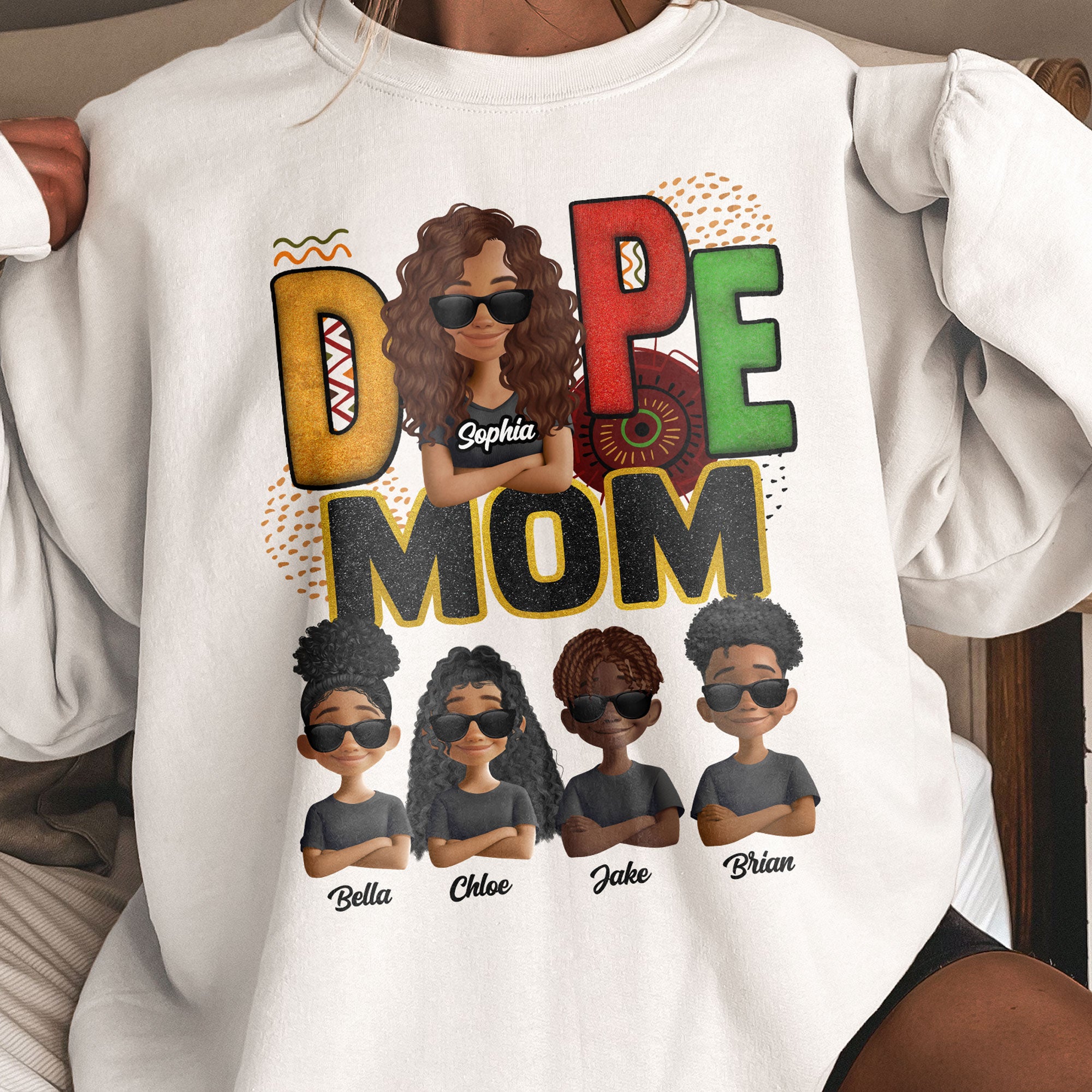 Celebrate the love and strength of Black moms with this bold and stylish personalized shirt! Featuring a trendy leopard print design, this shirt is perfect for moms who embrace their confidence and grace. Make it uniquely yours by customizing the appearances, names, and number of kids to reflect your beautiful family. Soft, comfortable, and full of personality, it’s a perfect choice for Mother’s Day, birthdays, or any occasion to honor the amazing Black moms who inspire us every day. A heartfelt gift she’ll cherish forever!