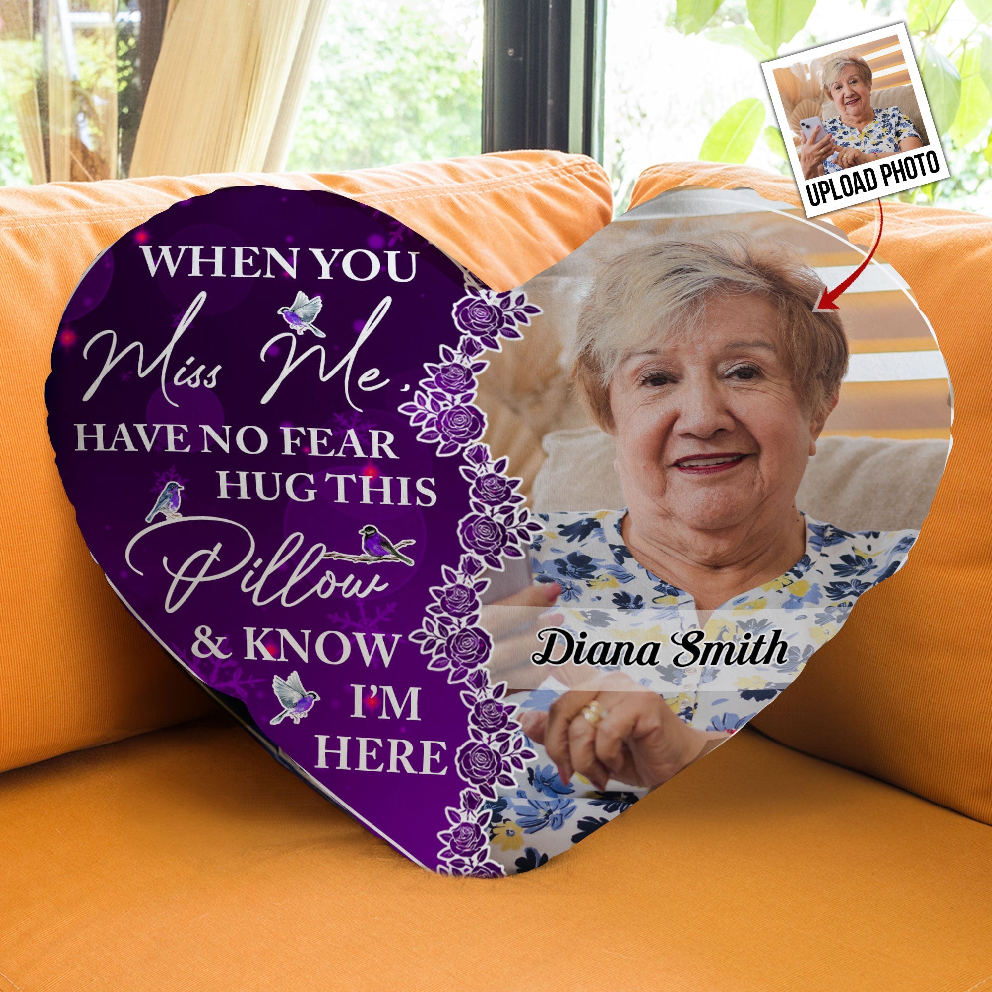 Memorial Gift Hug This Pillow & Know I’m Here – Custom Shaped Photo Pillow
