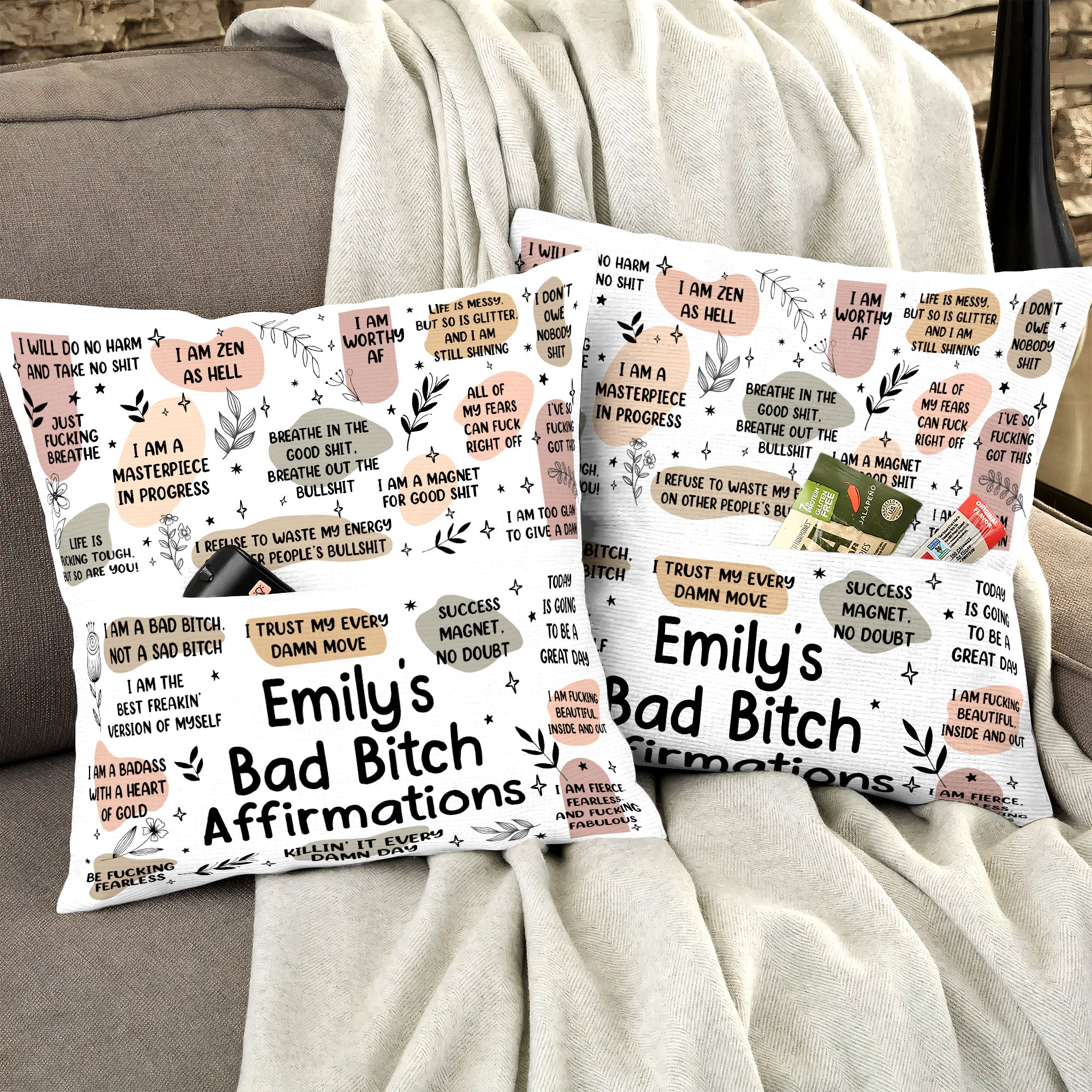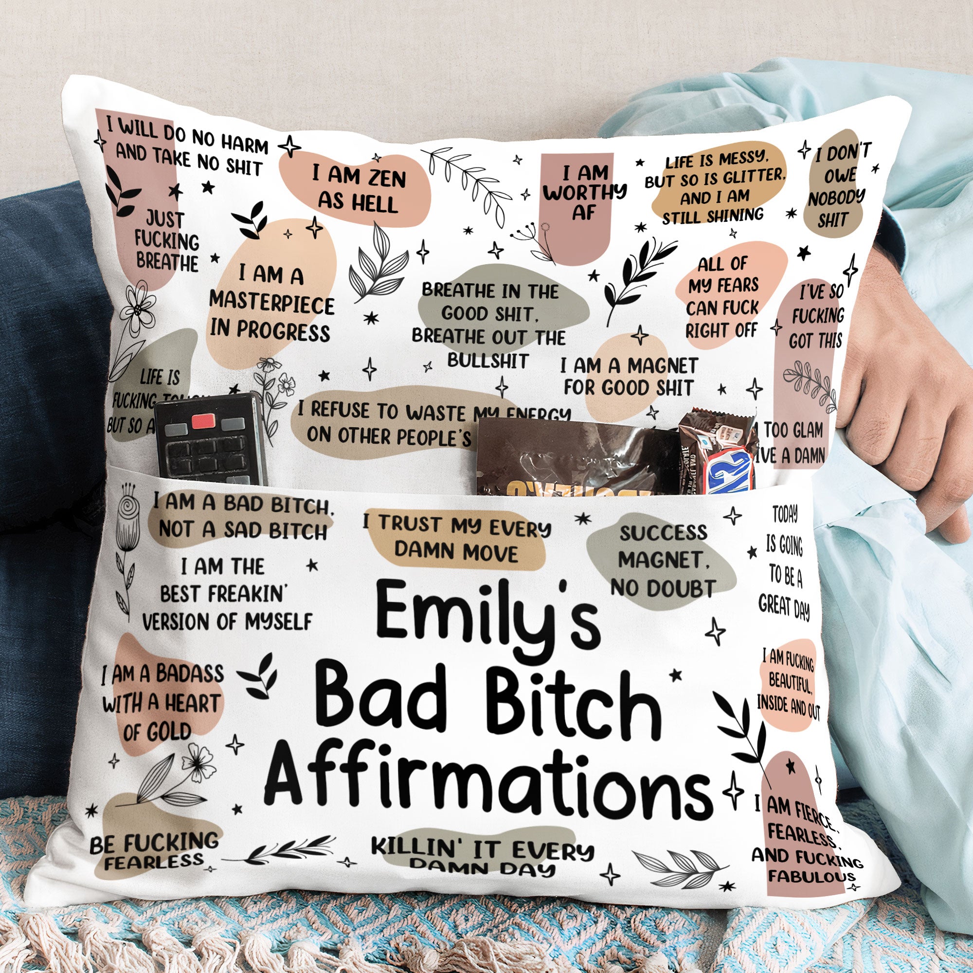 Cozy up with the My Badass Affirmations Personalized Pillow—the perfect self-gift or thoughtful surprise for your daughter, friends, or anyone who needs a reminder of their awesomeness! Featuring empowering affirmations and a stylish design, this pillow adds comfort and confidence to any space. Great for birthdays, Christmas, or just because, this personalized pillow (insert included) is a fun and inspiring way to celebrate yourself or someone you love!